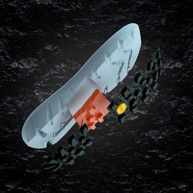 Litebase is the new innovative technology developed by Vibram; it allows a significant reduction of the total weight of the sole, without affecting performances.